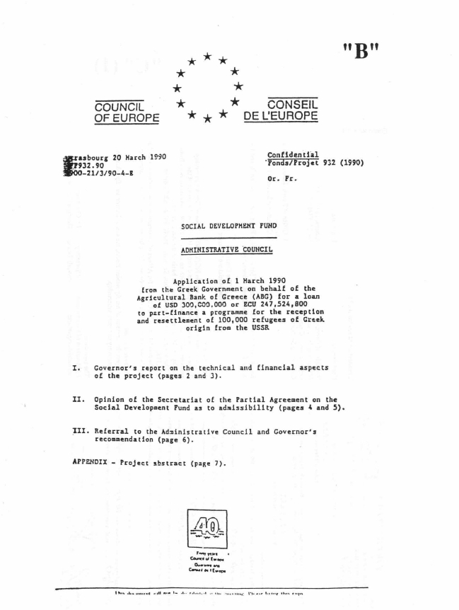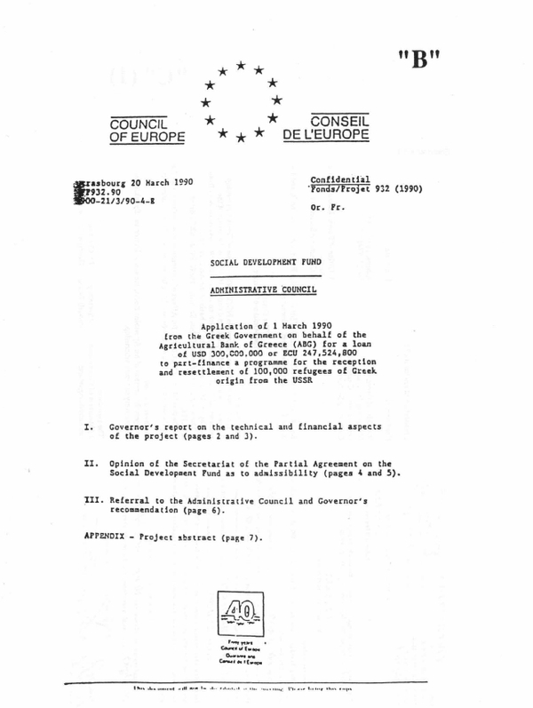 of 100,000 people of Greek origin who are refugees from the USSR,