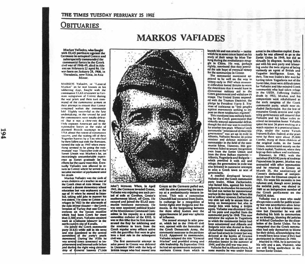 to Greece. The most notable is Markos Vafiades, commander of the communist
